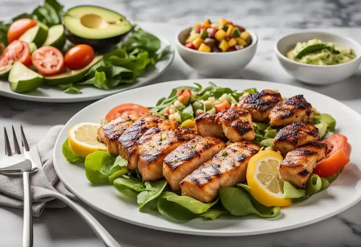 For a high protein, low-calorie keto meal under 300 calories per serving, individuals can opt for dishes like a shrimp and avocado salad or chicken breast served with a side of greens and drizzled with olive oil.