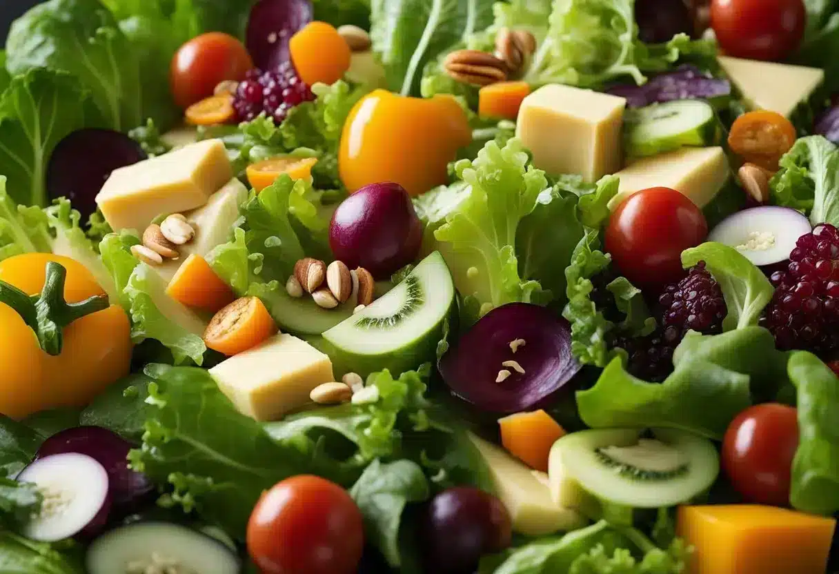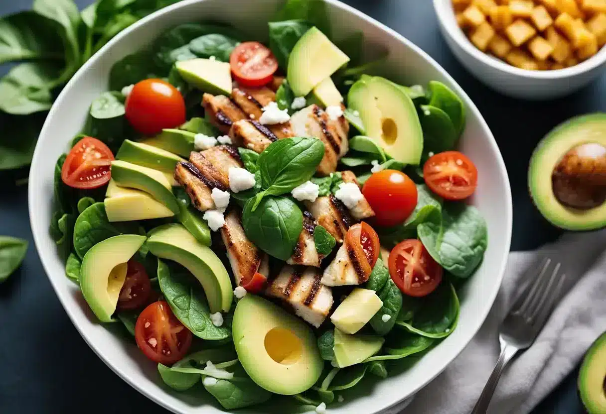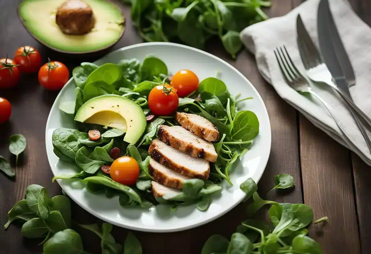 When crafting a keto-friendly salad, one should be keenly aware of the nutritional balance— focusing on healthy fats, proteins, and low-carb vegetables while avoiding items that might disrupt ketosis.