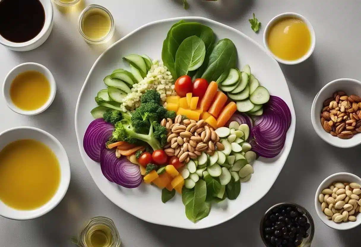 Salads that align with the ketogenic diet may have a positive impact on heart health by incorporating healthy fats that can support healthy cholesterol levels. Ingredients like olive oil are known for their heart-healthy properties. Furthermore, a low-carb diet that’s high in fiber and nutrition can aid in weight management due to its potential to reduce hunger and overall calorie intake. However, portion sizes and overall daily intake still need to be managed to ensure health benefits.