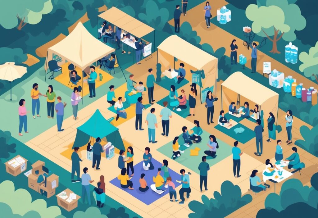 Community support groups offer help from people facing similar challenges. Local organizations often create these groups during emergencies.